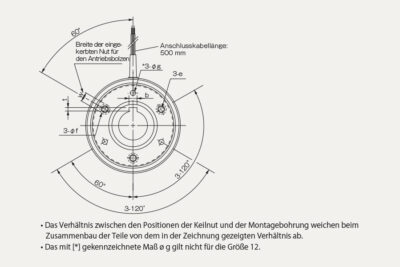 | Modell | Drehmoment (Nm) | Schutzklasse | Max. Drehzahl (min-1) | Trägheitsmoment J (kg·m2) Rotor | Trägheitsmoment J (kg·m2) Anker | Anzahl Zähne, volle Zahntiefe, voll | Anzahl Zähne, Sägezahn, voll | Schließdauer ta (s) | Öffnungsdauer tar (s) | Lager | Masse (kg) |